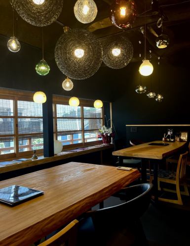 黒と木の静謐な対話築古の梁をそのままに漆黒の壁と天然木が織りなす空間は日常をふと忘れるような深い落ち着きをもたらします眺め、語らい時間を忘れたひとときをどうぞごゆっくりと